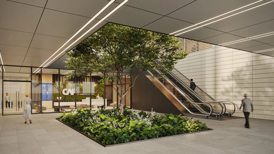 The architectural strategy strengthens this urban intent. A compact upper volume consolidates the private program above, while the ground level prioritizes openness and permeability, maintaining a constant visual and spatial relationship with the plaza. The institution is expressed through a clear gesture of giving space back to the city.