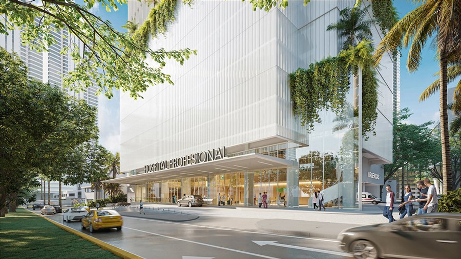 The Professionals Hospital, a mid-level care center, will offer comprehensive services including an emergency area, surgical rooms, maternity and neonatology units, a pharmacy, diagnostic imaging, a clinical laboratory, and a blood bank. These facilities are meticulously distributed across various floors to meet the needs of both users and patients.
