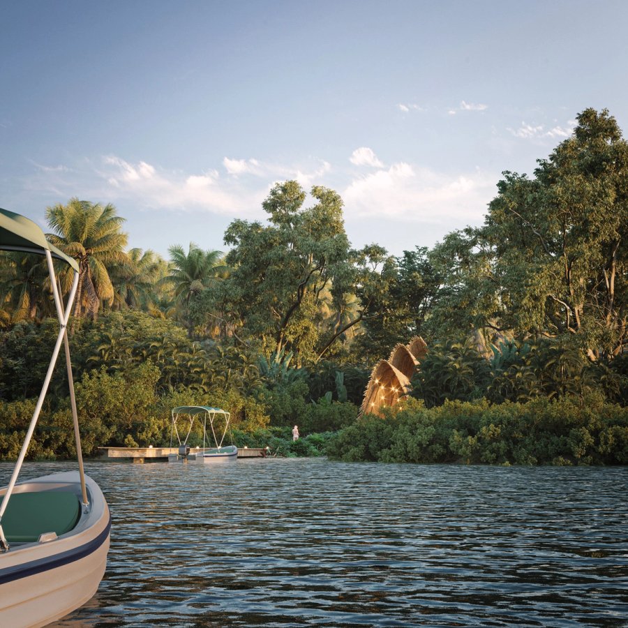 Incorporating nature into our design process has been paramount. From the outset, we found inspiration in the textures and materials native to the site, guiding us to craft organic structures that seamlessly blend with the environment. Our approach draws deeply from the rich tapestry of local materials and the vibrant spirit of village communities, ensuring that our designs not only harmonize with their surroundings but also resonate with the island's essence.