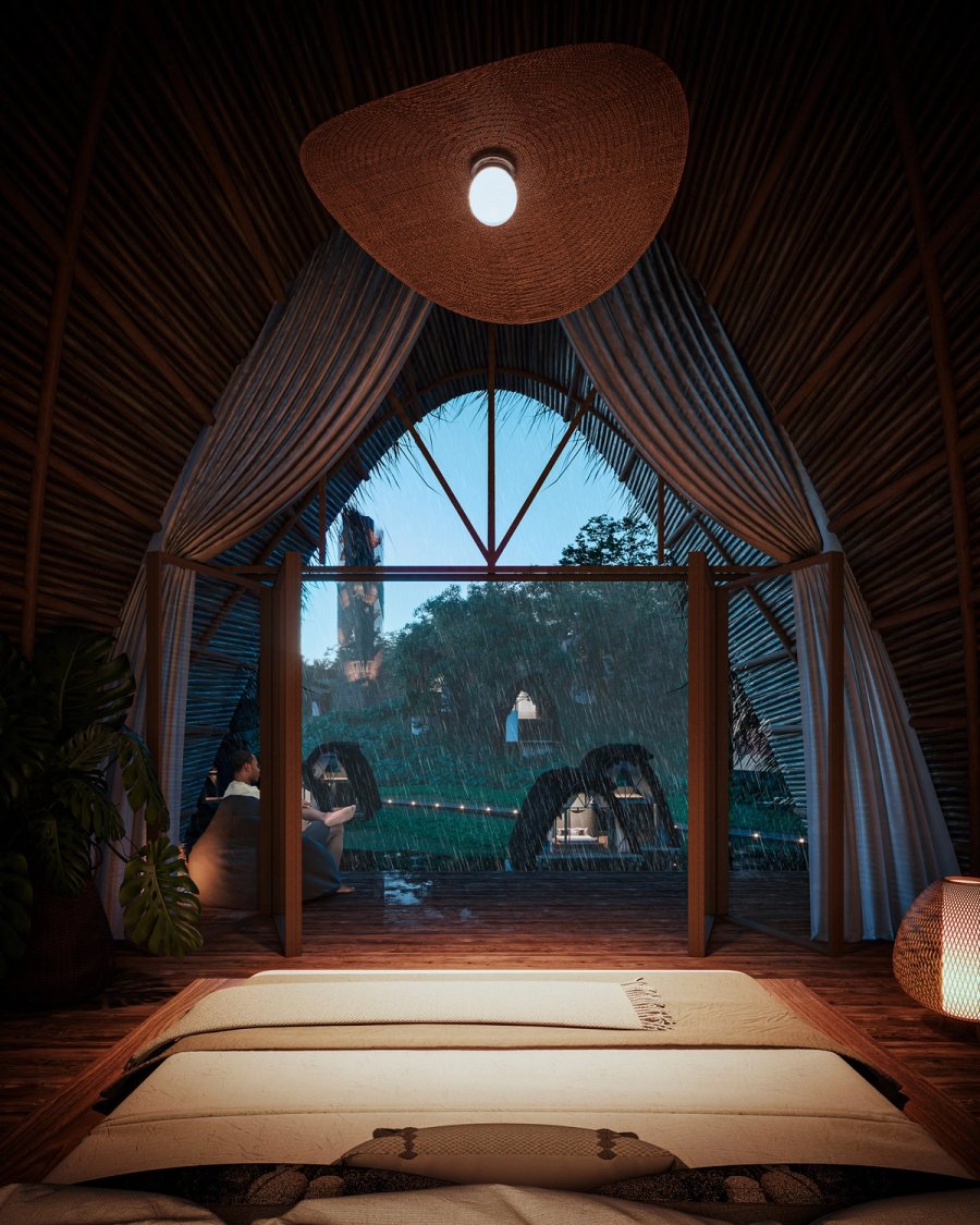Incorporating nature into our design process has been paramount. From the outset, we found inspiration in the textures and materials native to the site, guiding us to craft organic structures that seamlessly blend with the environment. Our approach draws deeply from the rich tapestry of local materials and the vibrant spirit of village communities, ensuring that our designs not only harmonize with their surroundings but also resonate with the island's essence.
